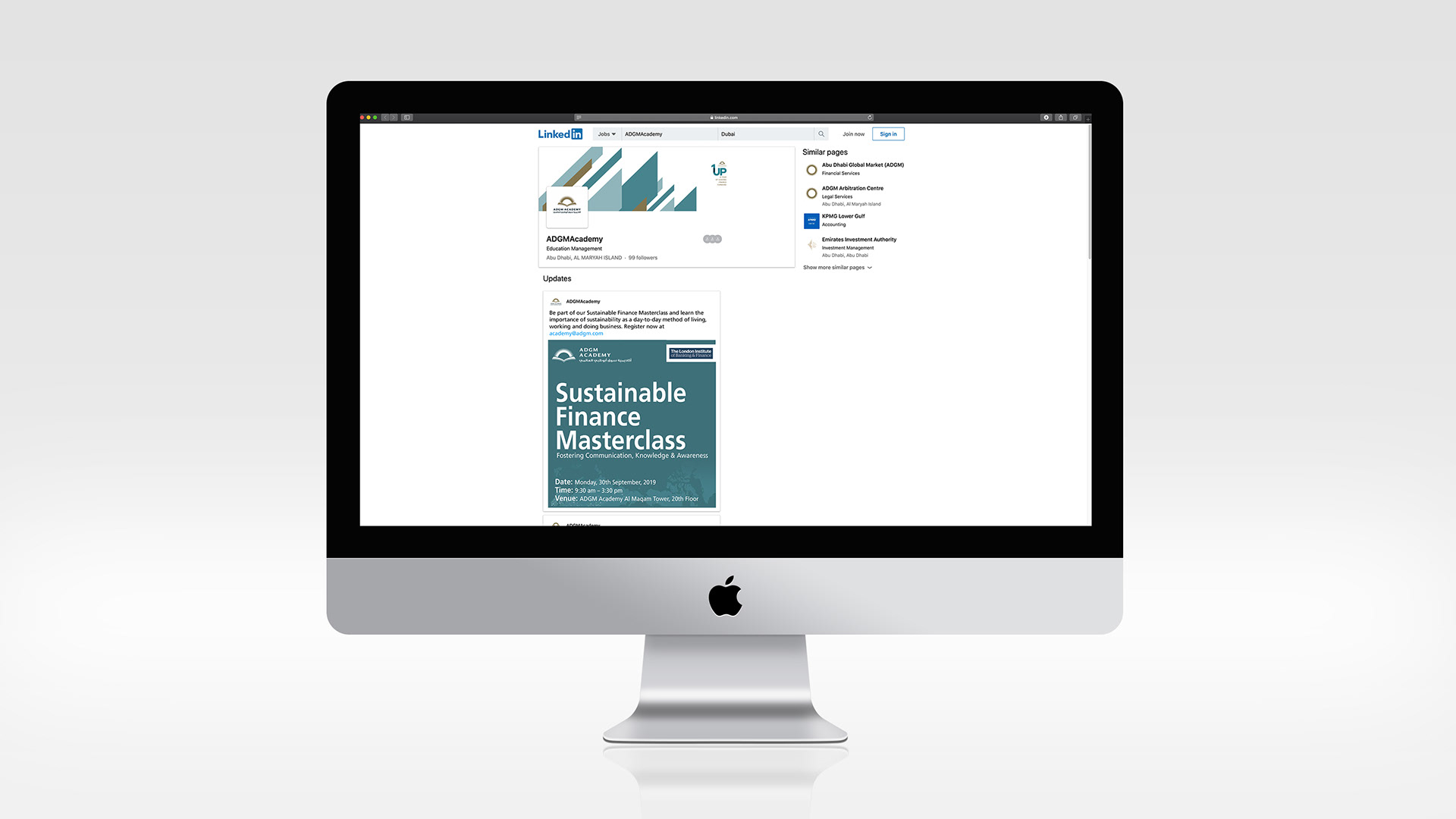 Brief: One of ADGMA’s Schools is the School of Sustainable Finance.