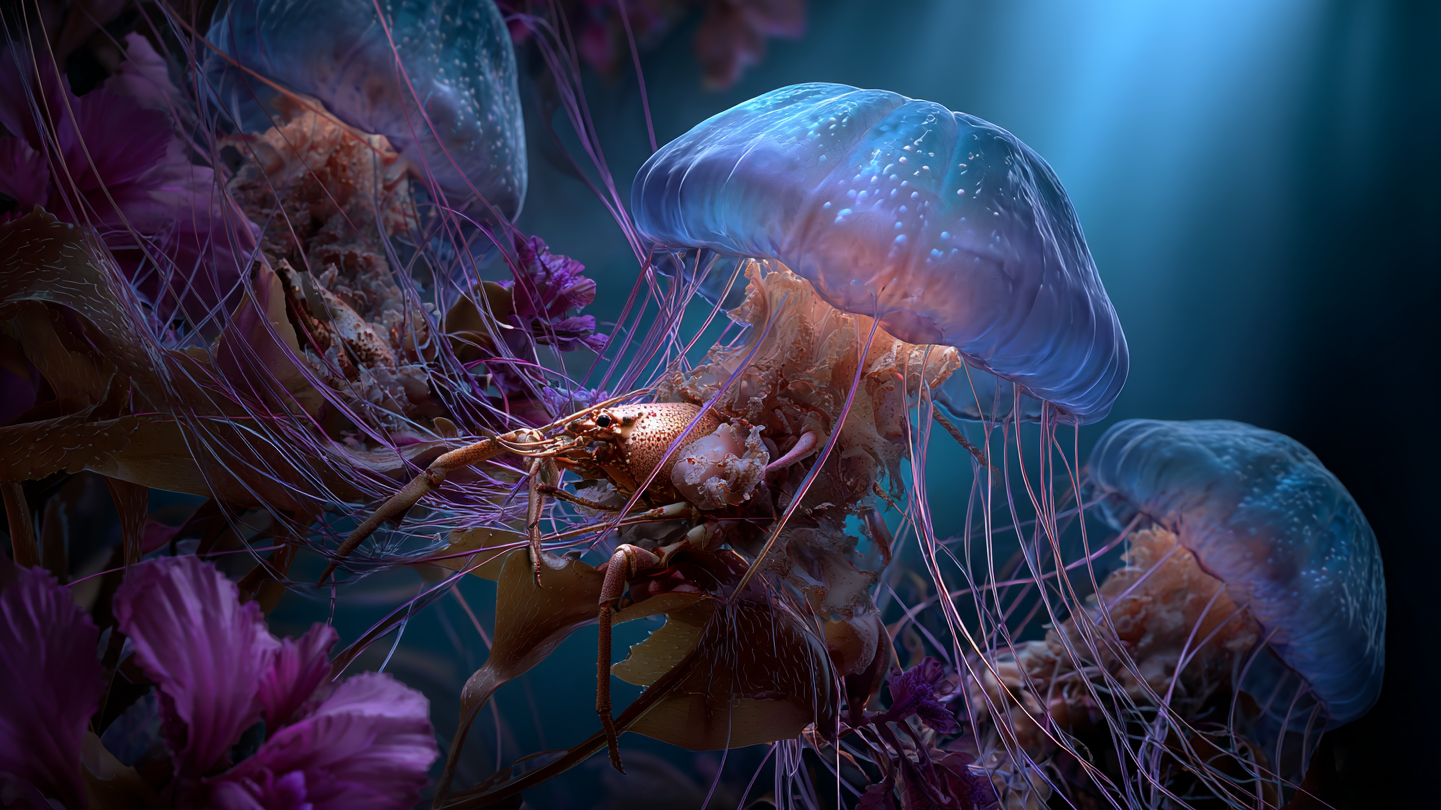 Each moment of the film is crafted with ultra-realistic detail, from flowing currents and bioluminescent coral to expressive underwater facial animations, leveraging AI tools.